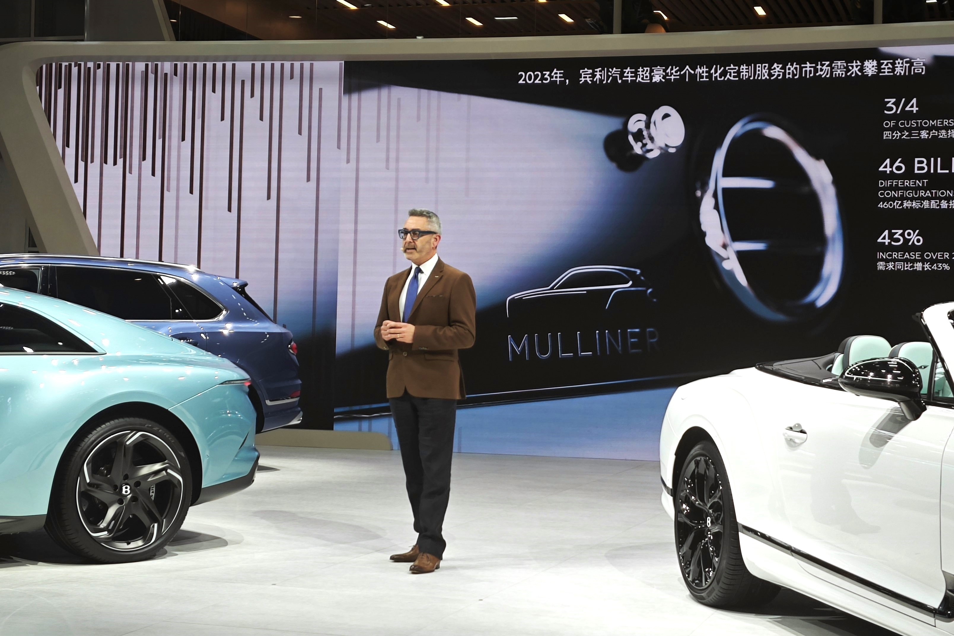 在北京车展期间,宾利展出了多款MULLINER特别定制的车辆,它们熠熠生辉。这些车中,Batur车型是首次在中国展出,还有加长版轴距的MULLINER型号。这些车款共同彰显了宾利在超豪华个性化定制领域的吸引力,让观众感受到了现代奢华出行的新高度。
