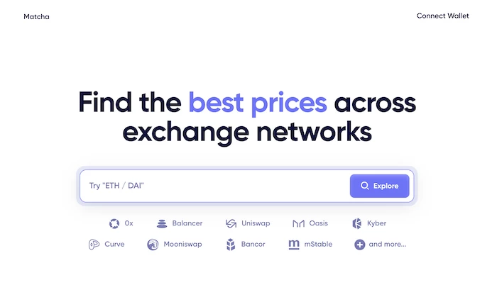 Matcha是0x协议专为消费者用户推出的DEX,近期在0x协议中表现突出。它与1inch类似,都是流动性聚合平台。这类平台通过整合多个主流DEX平台的流动性,包括0xMesh、KyberNetwork、Uniswap、Curve、Oasis等,以及0x协议自身的流动性资源。