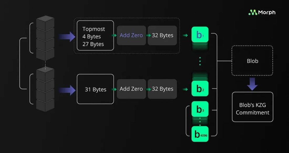 交易数据可能分散在两个Blob中,Morph制定了规则,确保交易数据不会跨越两个Blob存储。同时,针对Blob空间利用率不高的问题,Morph提出了新的聚合方案。这一举措表明,Morph在面对特殊情况时具备出色的应对能力。