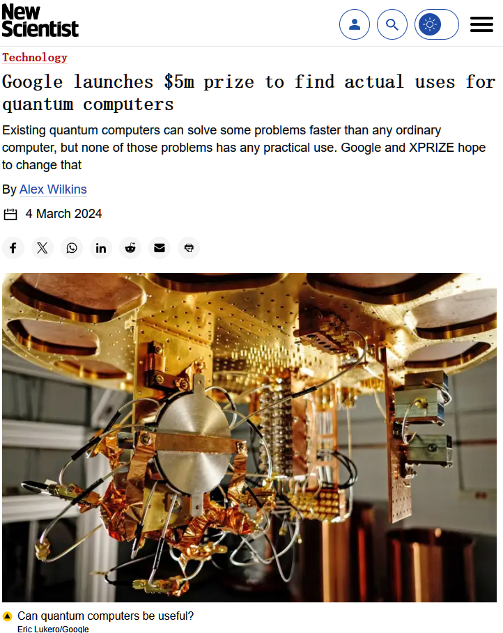 IT之家3月4日传来消息,《新科学人》杂志报道,谷歌与XPRIZE基金会联手推出了一项巨额竞赛,奖金高达3605万元人民币。他们的目标是探索量子计算机的实际应用,这一举动在科技界引发了巨大震动,仿佛在平静的湖面投下了一颗重磅炸弹!