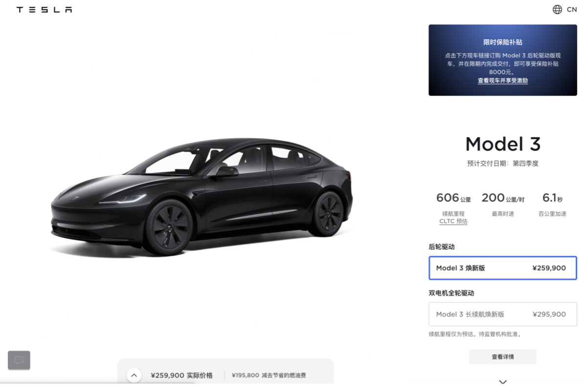 官网信息显示,Model 3的升级版将在第四季度投入使用,最早于10月即可提车。至于这款车的25.99万元售价是否能够吸引中国消费者,目前尚无确切消息。在我国电动车市场竞争激烈的环境下,Model 3的升级版表现确实值得大家关注和持续跟踪。